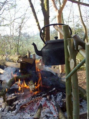 A cooking fire and permanent kettle